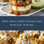 Delight in mini cheesecakes featuring a crisp apple topping and crumbly streusel, all layered on a buttery graham cracker crust. These Apple Crisp Mini Cheesecakes combine creamy, tart, and sweet flavors, perfect for a comforting dessert or cozy gathering treat.