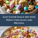 Prepare the Base In a large mixing bowl, combine the rice cereal squares, mini pretzels, pastel M&M’s, mini marshmallows, salted peanuts (if using), and pastel chocolate eggs. Gently toss until evenly distributed. Be careful not to crush the cereal or candy.