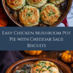This comforting Chicken and Mushroom Pot Pie features tender roasted chicken and sautéed mushrooms in a creamy thyme-infused sauce, topped with fluffy cheddar sage biscuits baked to golden perfection. A perfect dish for a hearty family meal with a blend of rich flavors and rustic textures.