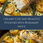 A comforting dish featuring tender cod fillets and roasted Yukon gold potatoes, all smothered in a flavorful rosemary cream sauce with hints of lemon and capers for a deliciously rich and slightly tangy meal.