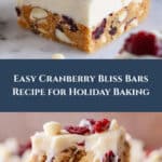 Cranberry Bliss Bars are a delightful combination of a soft, buttery bar studded with dried cranberries and white chocolate chips, topped with a creamy orange-zested cream cheese frosting, extra dried cranberries, and a drizzle of melted white chocolate. Perfectly balanced between sweet and tangy, these bars are an ideal treat for holiday gatherings or any special occasion.