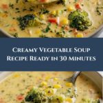 This creamy vegetable soup is a comforting and rich blend of mixed vegetables, sautéed aromatics, and a smooth combination of heavy cream and melted cheese. Perfect for a quick and satisfying meal, this soup provides a velvety texture and delicious flavor in just 30 minutes.