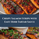 These Crispy Salmon Strips with Herb Tartar Dip are a delicious and crunchy seafood treat, perfect for a quick and flavorful meal or appetizer. The golden crust pairs beautifully with a tangy herb-infused tartar sauce.