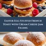Thick brioche slices are filled with a creamy blend of cream cheese and strawberry jam, then dipped in a rich custard mixture and cooked to golden perfection. Shaped like eggs and dusted with powdered sugar, this festive French toast is perfect for a delightful Easter brunch.