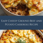 This Easy Cheesy Ground Beef and Potato Casserole is a comforting and hearty dish combining seasoned ground beef, creamy cheese sauce, and tender sliced potatoes. Perfect for a family dinner, this casserole features layers of flavorful beef mixture and potatoes, topped with melted cheddar cheese and baked to golden perfection.