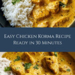 This Easy Homemade Chicken Korma recipe offers a rich and creamy Indian-inspired curry made with tender chicken breasts simmered in a fragrant blend of spices, yogurt, coconut cream, and ground almonds. Perfectly balanced with gentle warmth from mild chili powder and finished with double cream, this comforting dish is ideal to serve with fluffy rice or warm flatbread like chapati or naan for a satisfying meal ready in just 30 minutes.
