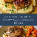 This Garlic Herb Chicken with Mashed Potatoes Delights recipe features juicy, herb-seasoned chicken breasts pan-seared to golden perfection and simmered in a flavorful garlic-lemon sauce. Served with creamy mashed potatoes and sweet glazed carrots, this comforting meal is perfect for a satisfying family dinner.