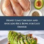 A vibrant and easy-to-make meal prep recipe featuring tender honey lime glazed chicken breasts stacked over fluffy rice and ripe avocado slices, creating a flavorful and nutritious dish perfect for busy weeknights.