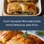 These Individual Salmon Wellingtons feature flaky puff pastry wrapped around seasoned salmon fillets topped with a flavorful herb-Dijon spread, feta cheese, and fresh spinach, baked to golden perfection for an elegant and delicious meal.
