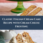 A moist and flavorful Italian Cream Cake featuring a tender crumb packed with shredded coconut and chopped pecans, layered and frosted with a rich, creamy cream cheese frosting with pecans. Perfect for celebrations or indulgent desserts.