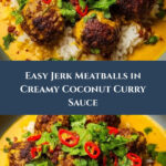 These flavorful Jerk Meatballs in Coconut Curry Sauce combine spicy Jamaican jerk seasoning with a rich and creamy coconut curry sauce, creating a delicious dish perfect for a comforting meal. Ground beef meatballs are lightly seared and then simmered in a fragrant sauce made with coconut milk, curry powder, and a touch of sweetness, garnished with fresh cilantro for a vibrant finish.