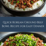 This Korean Ground Beef Bowl is a quick and flavorful 25-minute meal featuring savory ground beef seasoned with garlic, ginger, soy sauce, and sesame oil, served over fluffy rice with optional vegetables and toppings for a delicious and customizable dinner.