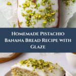 This Pistachio Banana Bread is a moist and flavorful treat combining the natural sweetness of overripe bananas with crunchy chopped pistachios, finished with a delicate powdered sugar glaze for a perfect balance of texture and taste.
