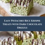 These Pistachio Rice Krispie Treats combine the classic marshmallow and cereal base with a unique twist of instant pistachio pudding mix and a drizzle of rich dark chocolate. They offer a delightful nutty flavor and a satisfying crunch, perfect for a sweet snack or dessert that sets quickly and beautifully.