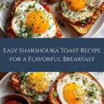 - Assemble the Toast: Place the toasted bread slices on plates. Spoon the shakshouka sauce with the poached eggs over the toast, ensuring some sauce covers each slice.