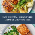 This Sheet-Pan Salmon with Bok Choy & Rice is a quick and flavorful dinner featuring tender salmon fillets roasted alongside crisp bok choy with a savory miso glaze, served over a bed of brown rice that soaks up all the delicious flavors.