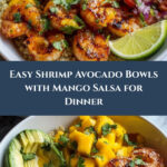 These vibrant Shrimp and Avocado Bowls feature juicy grilled shrimp topped with refreshing mango salsa and tangy lime-chili sauce, served over a base of fluffy rice or quinoa for a quick and healthy meal.