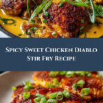 Spicy Sweet Chicken Diablo is a vibrant and flavorful dish featuring tender chicken thighs tossed with crisp bell peppers and onions in a spicy honey-soy glaze. This recipe offers the perfect balance of heat and sweetness, making it an irresistible meal served over steamed rice.