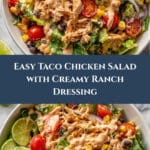 This Taco Chicken Salad combines shredded chicken, fresh vegetables, and a creamy taco-seasoned ranch dressing for a quick and flavorful meal that’s perfect for lunch or dinner.