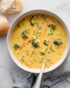 - Add coconut milk and vegetable broth, stirring until smooth.