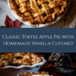 This Toffee Apple Pie is a delightful combination of tender, spiced Granny Smith apples layered in a buttery pie crust and drizzled with rich homemade toffee sauce. Finished with a beautifully woven lattice crust and served with a creamy vanilla custard sauce, this dessert is perfect for a comforting fall treat or a festive occasion.