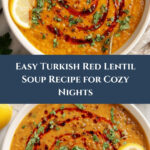 Making this Turkish Red Lentil Soup (Kırmızı Mercimek Çorbası) recipe is like wrapping yourself in a warm, fragrant hug. The deep aromas, rich textures, and vibrant colors come together to create an unforgettable experience perfect for sharing with family or enjoying a cozy night in. Trust me, once you try this soup, it will become your go-to for a comforting, flavorful meal that’s as nourishing as it is delicious. Grab your apron and dive into a bowl of tradition and taste!